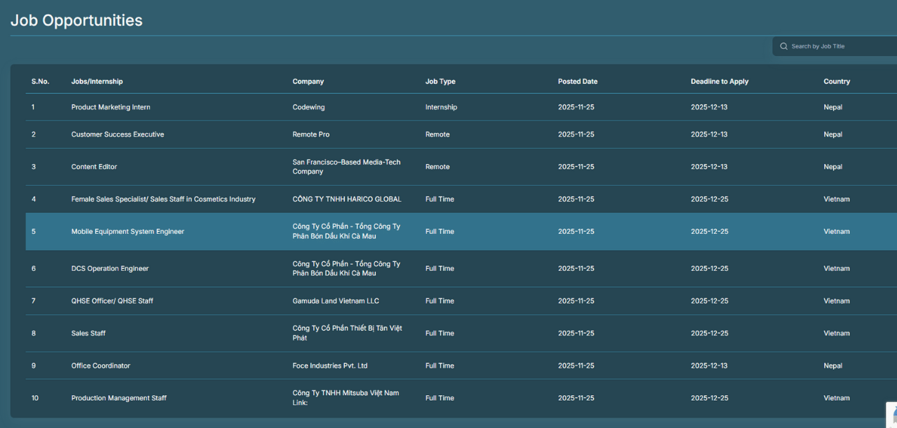 Browse global career opportunities tailored to your skills and interests on our worldwide job marketplace.